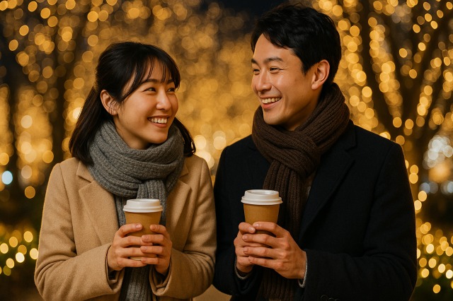 冬の散歩デートでは、防寒対策が最優先事項です。