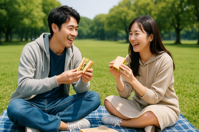 公園でのデートは、芝生に座ったり、少し体を動かしたりする可能性があります。