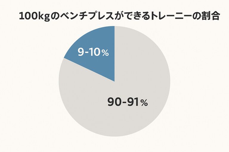 ベンチプレス100kgを達成できる人の割合は、およそ9%から10%程度であると言われています。