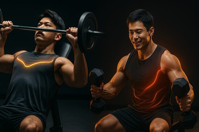 このことから、100kgを目指すトレーニーは、高重量を扱うフラットベンチプレスで神経系を強化しつつ、インクラインベンチプレスやダンベルフライを補助種目として取り入れることで、大胸筋のさらなる筋肥大を狙うという戦略が科学的に裏付けられます。