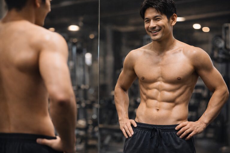 自分の身長と体重のバランス(BMI)だけでなく、鏡で見た時の筋肉のつき具合をチェックしてみてください。