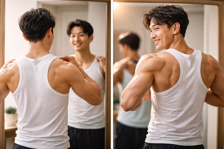 3ヶ月を過ぎたあたりから、徐々に筋肉の繊維が太くなり始め、鏡を見たときに背中のラインが変わってきたことに気づくようになります。