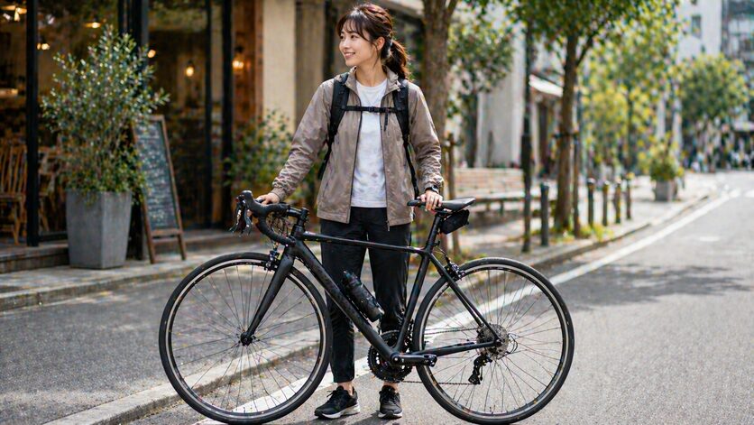 いきなりフル装備にするのが不安なら、ロードバイクにカジュアルに乗るスタイルから始めるのが得策です。